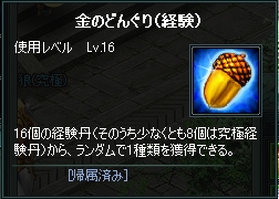 今までいろんな所で獲得して溜め込んだ帰属どんぐりから何が出てくるんだろうとやってみたところ、装備としてはまぁまぁですかね。