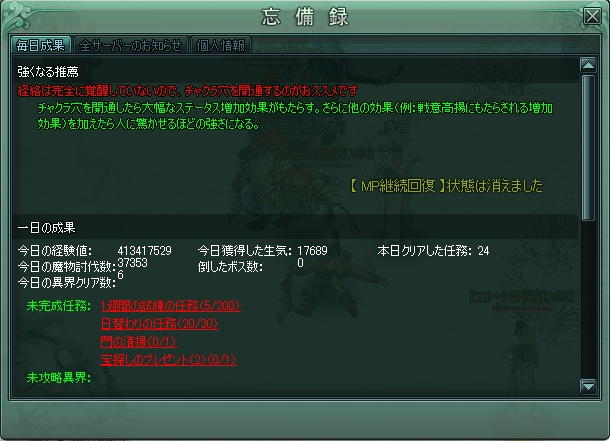 正確には24時間ぶっ続けで出来ていないけど、23時20分現在でこれだけ経験値稼げたw