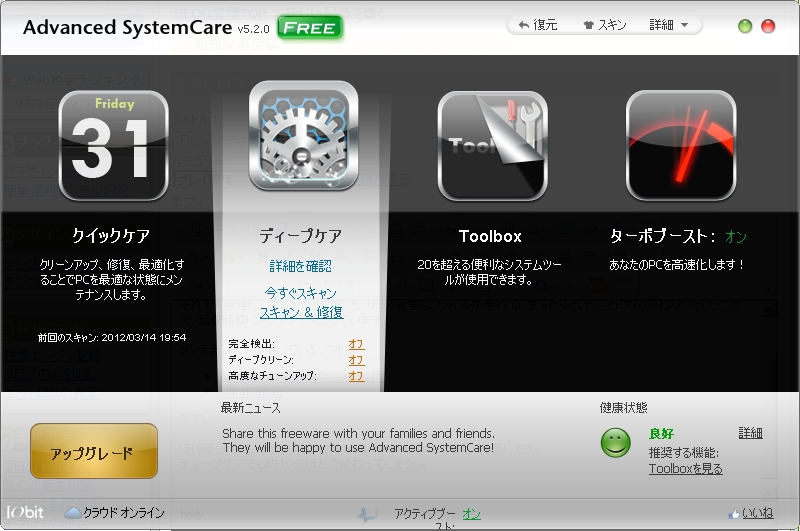 ほぼ毎日のメンテナンスはAdvanced SystemCareで事足りる感じです。