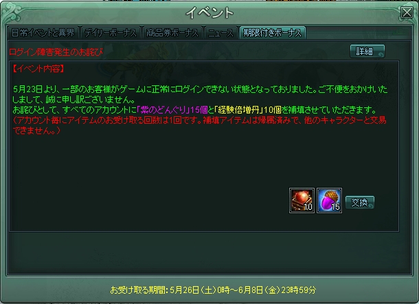 ・一日以上の狩りドロップ(アイテム、銅貨)