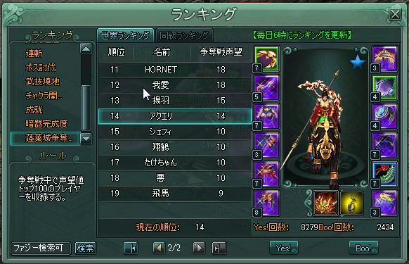 ですが、今回は旗争奪戦と重なっておらず、主力メンバーも参加していたこともあり、オリエンタルの一人勝ちになることなく、城主なしで終了。