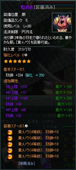 ★3→★6へ成功し、防御値が今の鎧より上昇したので、長かったランク4との鎧とおさらば。