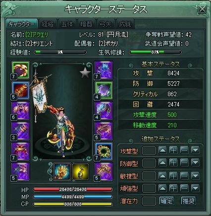 旗争奪戦の前にレベルが81に上がったので、まぁ良しとするか。