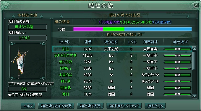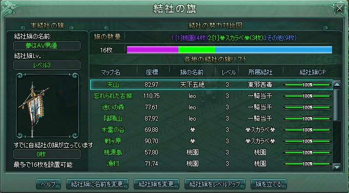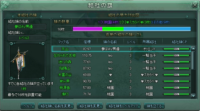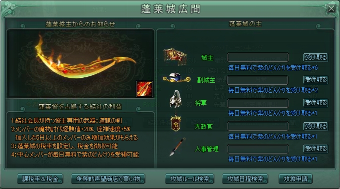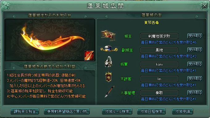 攻城戦は大事な用事があったので、出られなかったワケなんですが、22時半頃帰宅したら[蓬莱城]の文字が消えてたのでビックリ・・・。