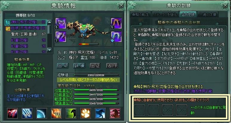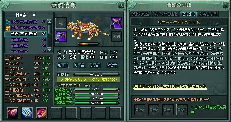 残念な聖虎・玄冥(普通)の乗騎情報で説明すると、下線の部分のように「[魔獅子・赤焔]以上の乗騎は合わせ技を使用可能」と書いてあります。