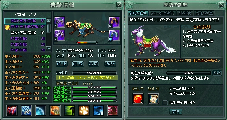 8番目は5倍クリティカルが来て、若干焦りましたが、結構乗騎のおかげで余裕w