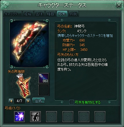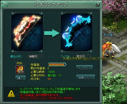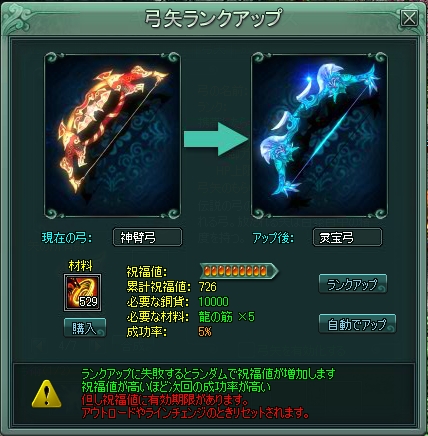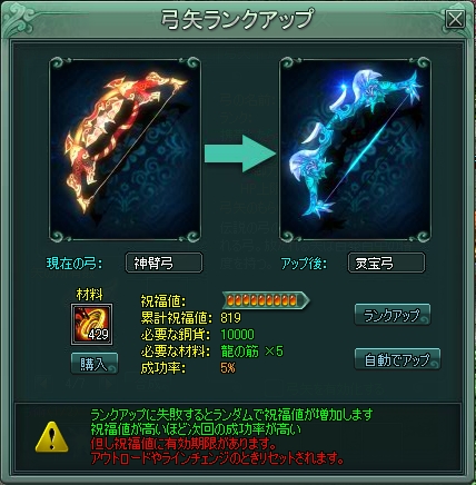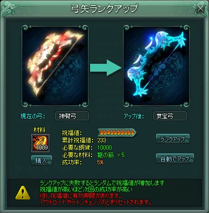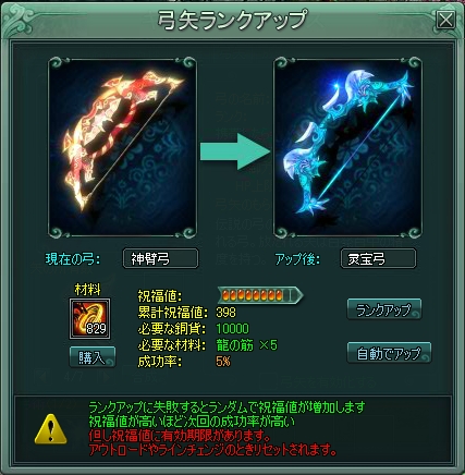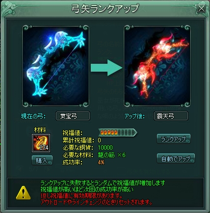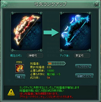 ついにこのブログ始まって以来のビッグイベント!(自分の中でw 弓矢ランクアップの4ランク(神臂弓)から5ランク(灵宝弓)への挑戦!!